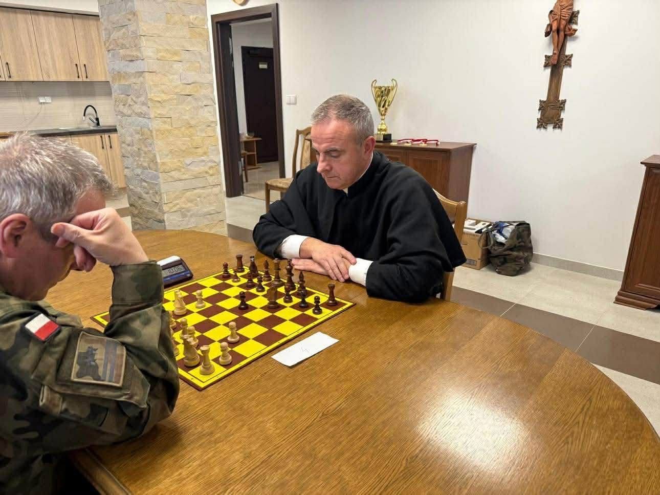 29 listopada 2025 miało miejsce w naszym seminarium niecodzienne wydarzenie: mecz na 64 polach. Przy szachonicach zasiedli po jednej stronie zespół duchownych, po drugiej zespół Wojska Polskiego. Gospodarze odnieśli zwycięstwo w wynikiem 5,5 do 0,5 punktu. Emocje, pasja, dynamika, strategia kolejny raz pokazały, że ta królewska gra potrafi zdobyć uwagę widzów, rozwijać intelekt, ale też dobrze się spotkać.